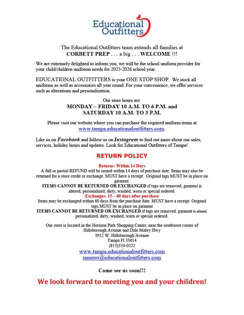 Faith Outreach Girls Uniform Requirements 2024-2025