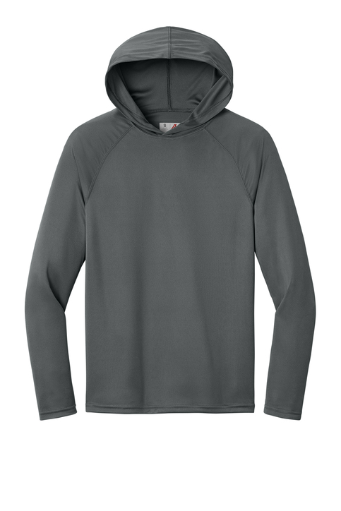 A top choice for sports and exercise, this hooded long sleeve tee combines a comfortable fit with performance features such as moisture wicking and sun protection.